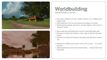 This film is currently in production. In the images that follow, I’ll show how I’ve streamlined my pipeline using smarter tools and AI (all under fair-use guidelines). You’ll also see the fresh experiments I’ve run in art style, story beats, and directorial approach.